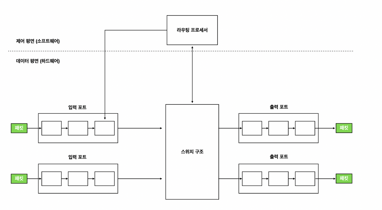 '패킷'이라는 추상적인 메시지는 결국 물리 계층을 타고 전달될 것입니다. 그리고 경로를 설정하고 패킷을 전송하는 라우터도 근본적으로는 이 신호를 받고 보내야 하는데, 이를위해 하위 계층을 수행할 수 있는 장치가 필요할 수 밖에 없습니다. 따라서 라우터 내부에 스위치가 존재하는 것은 어쩌면 당연하다고 볼 수 있습니다.