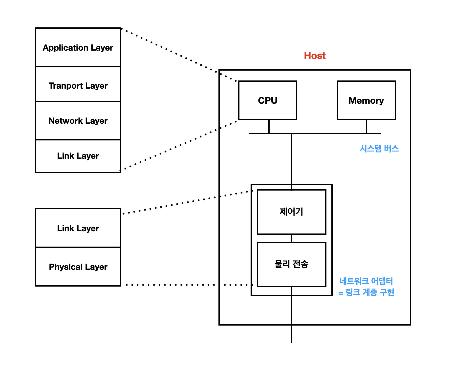 링크 계층이 위와같은 역할을 수행한다는 사실을 알게 되었습니다. 그러면, 링크 계층은 어디에 구현되어 있을까?에 대해 생각해봅시다.