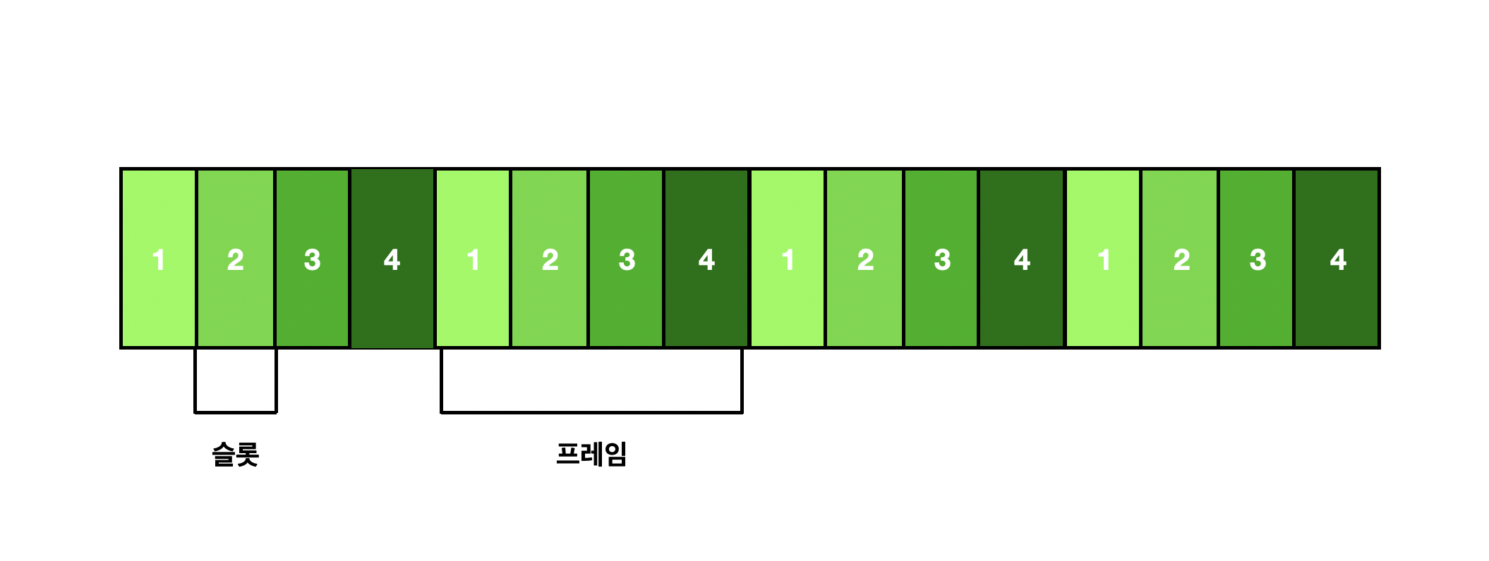 - 모든 프레임은 정확히 L비트로 구성됩니다.