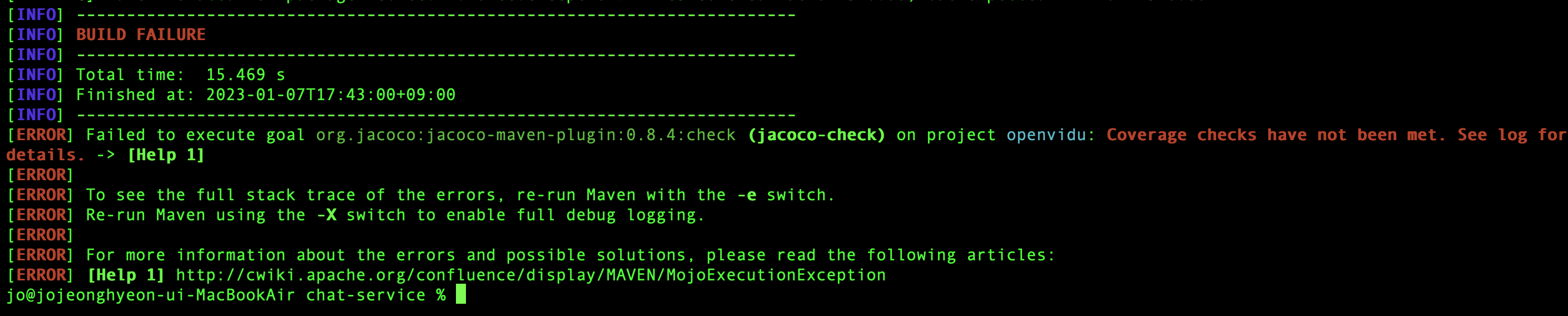 pom.xml 파일에 jacoco plugin을 추가하고, 터미널에서 mvn clean verify를 입력하자.