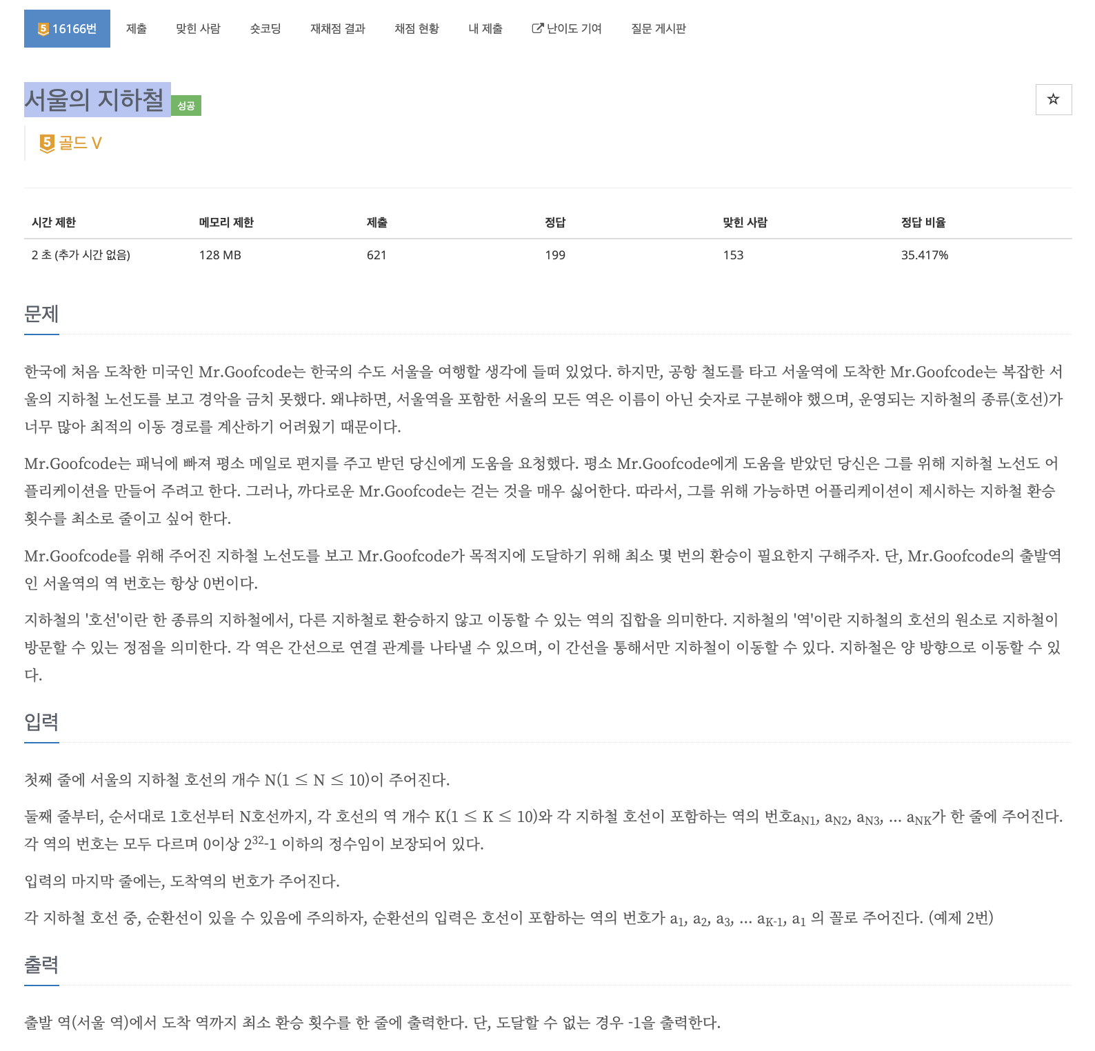 결국 구하고 싶은 것은 몇 번 지하철을 갈아타는지이다. 따라서 지하철을 기준으로 도달할 수 있는 역들에 전부 방문을 표시하고, 역에서 환승할 수 있다면 환승을 하면 된다. 이때 방문 값이 1 증가하게 되고 우리는 이 값의 최소비용을 구해야 하므로 다익스트라를 함께 사용하면 문제를 해결할 수 있다.
