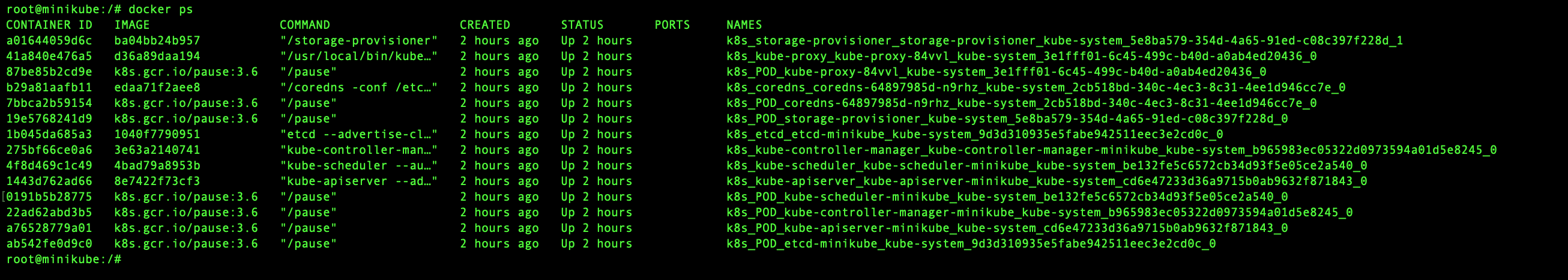 이러한 컴포넌트들은 기본적으로 도커 컨테이너로서 실행되고 있다. 마스터 노드에서 docker ps 명령어를 실행해 보면 매우 많은 컨테이너가 실행되고 있음을 볼 수 있다.