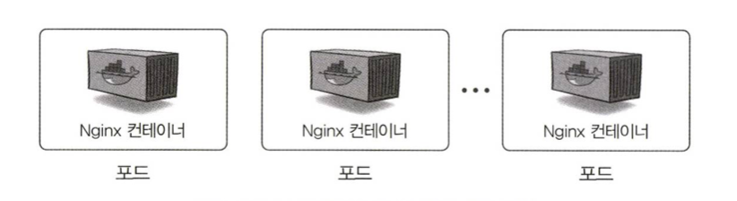 Nginx 웹 서비스를 쿠버네티스에서 생성하려면 컨테이너와 파드를 어떻게 사용할 수 있을까? 가장 쉬운 방법은 파드 1개에 Nginx 컨테이너 1개 만을 포함해 생성하는 것이다. 만약 동일한 Nginx 컨테이너를 여러 개 생성하고 싶다면 1개의 Nginx 컨테이너가 들어있는 동일한 파드를 여러 개 생성하면 된다. 이처럼 파드는 컨테이너 애플리케이션을 나타내기 위한 기본 구성 요소가 된다.