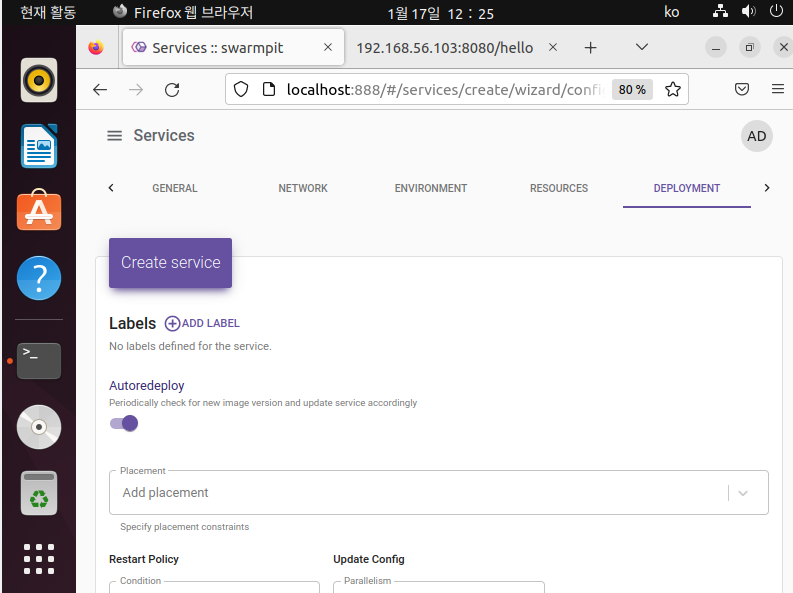 swarmpit 공식문서에 따르면, 이 옵션은 새 버전의 Service image가 push 되었는지 확인하고 서비스를 자동으로 업데이트하는 자동 재배포 기능을 제공한다고 한다. 그리고 모든 노드를 동시에 업데이트하는 것이 아니고, 순차적으로 업데이트하기 때문에 무중단 배포까지 자동으로 수행할 수 있다.