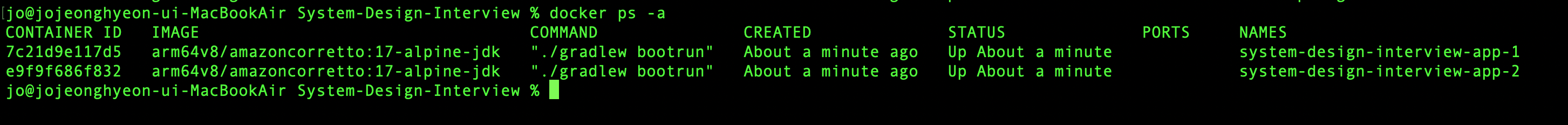 그러니 명시한 ports 설정을 지우고 scale 명령어를 사용하면 정상적으로 2대의 container가 실행된 것을 볼 수 있다.