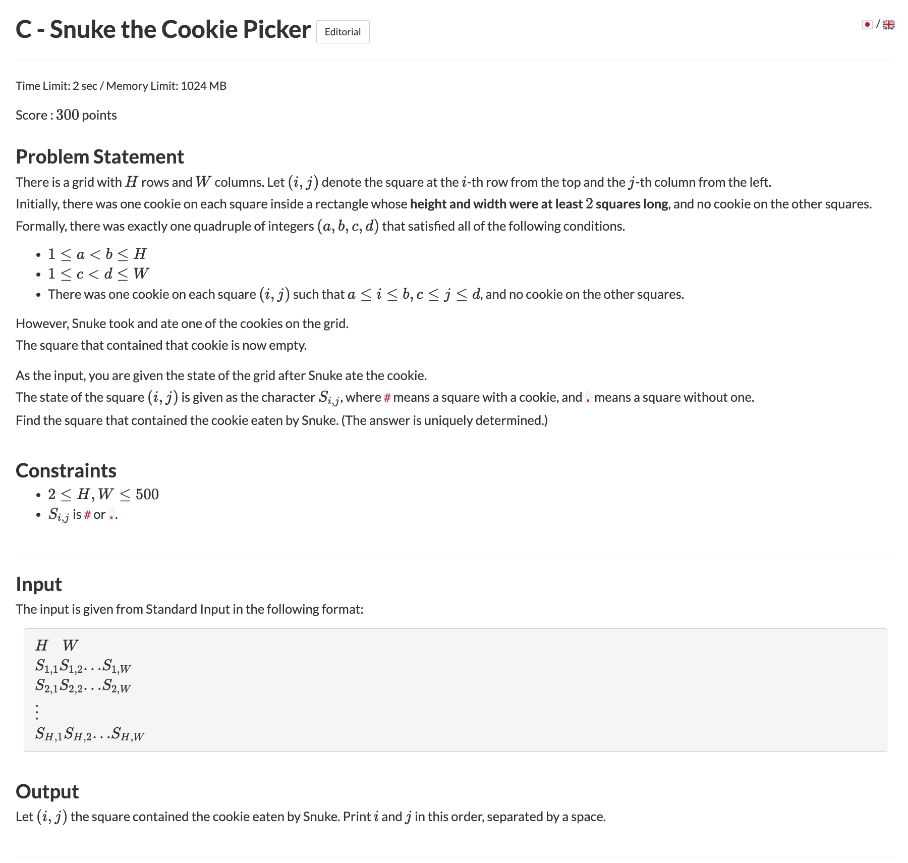 if (psum[i][j] > 1) ax = i, ay = j;