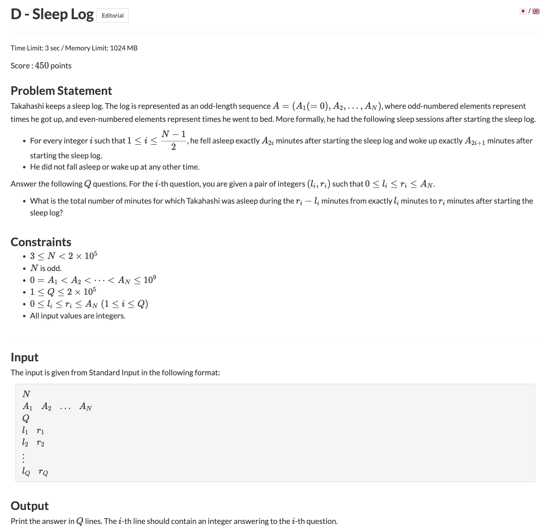 이때 Q개의 쿼리가 [left, right] 형태로 주어지는데 left ~ right 사이에 잠을 잔 시간을 구하는 문제이다.